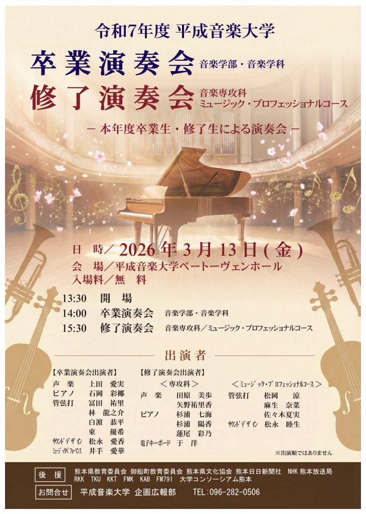 令和7年度平成音楽大学『卒業演奏会・修了演奏会』を開催します