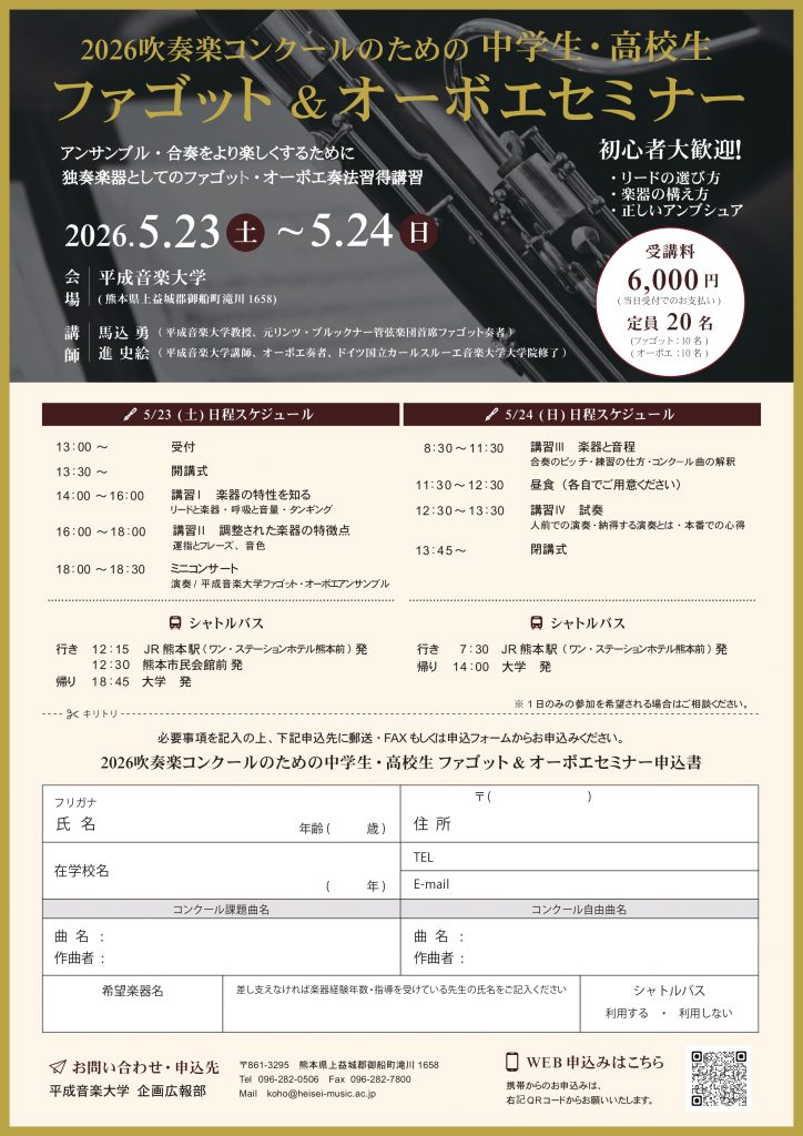2026ファゴット&オーボエセミナー開催情報